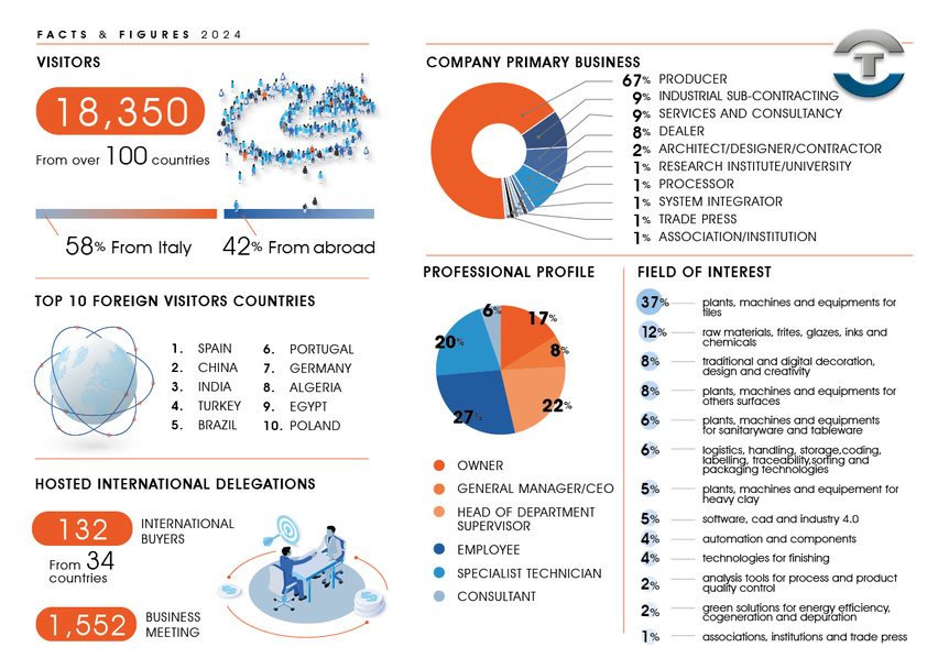 With more than 40% of exhibitors and 50% of visitors coming from abroad, Tecna is a global reference point for innovation and technology, an international hub for development in surfaces.